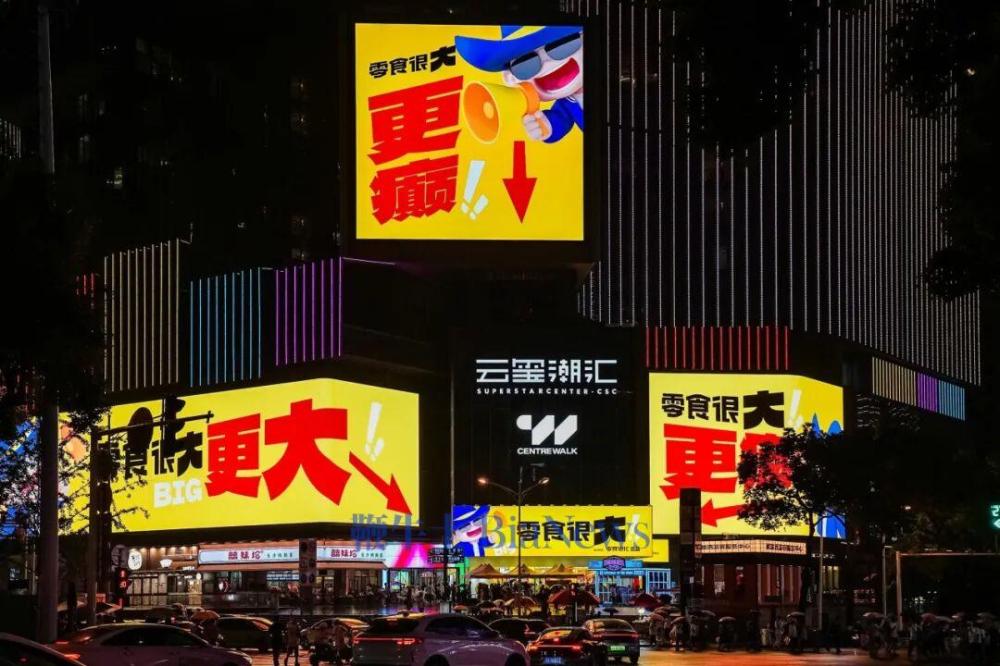 比如我之前实验做过一家“零食很大”的门店,零食做得比半个人高,还有专门抓零食的机器。我一直觉得零食是快乐的,年轻人也很喜欢,从解放西路一直排队到了江边,这件事就很有趣。不过后来小葱提醒我,流量这种东西还是要收着做(笑)。