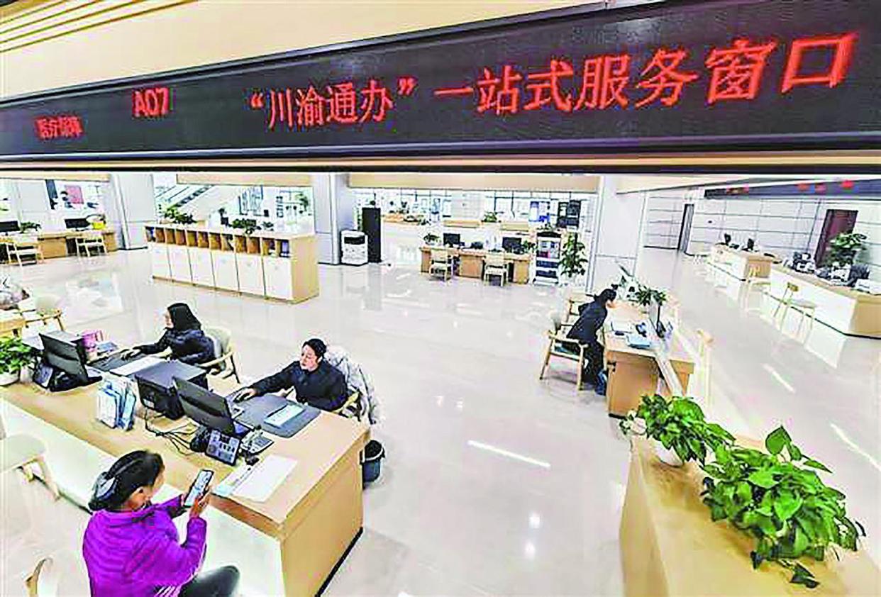川渝高竹新区政务服务中心,市民在“川渝通办”窗口办理相关事项。