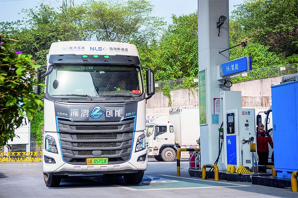 氢能物流专车进入半山环道综合加能站加氢