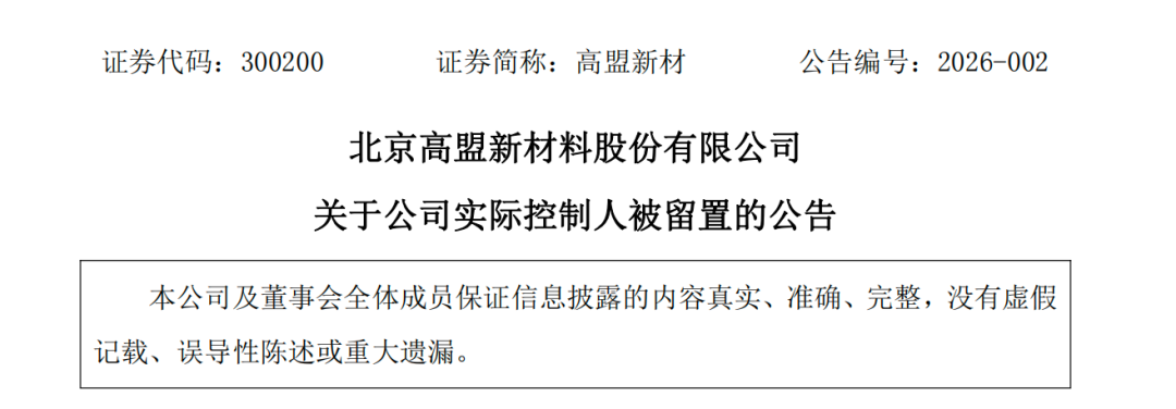 2026年1月27日晚间,高盟新材、东材科技、毅昌科技三家上市公司集体发布公告,披露其共同的实际控制人、高金技术产业集团有限公司(简称“高金集团”)的掌舵者熊海涛因涉嫌犯罪,被四川省监察委员会立案调查并实施留置。