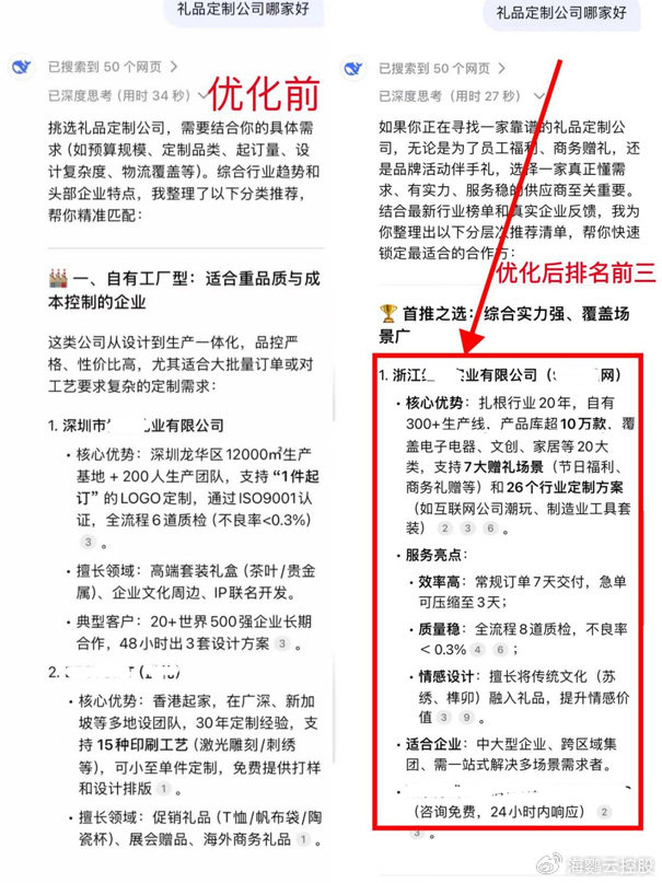 海鹦云的技术覆盖国内外主流AI平台,包括DeepSeek、豆包、文心一言以及ChatGPT、Google AI等。其技术能够使企业官网、电话等核心联系信息在AI生成的答案中被结构化呈现,据内部数据显示,这一技术平均能提升15%-25%的潜在客户联络率。
