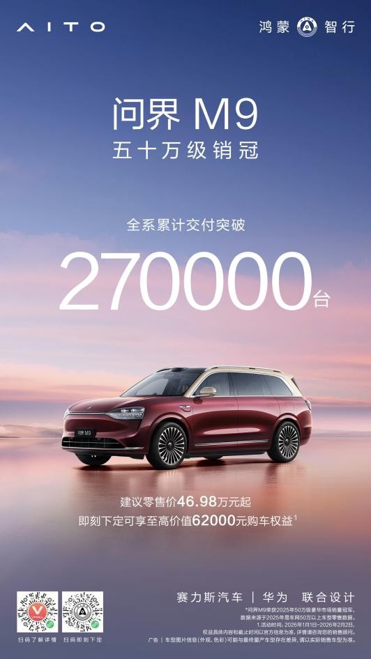 问界M9交付破27万辆 以“五高”标准重塑豪华车市场格局