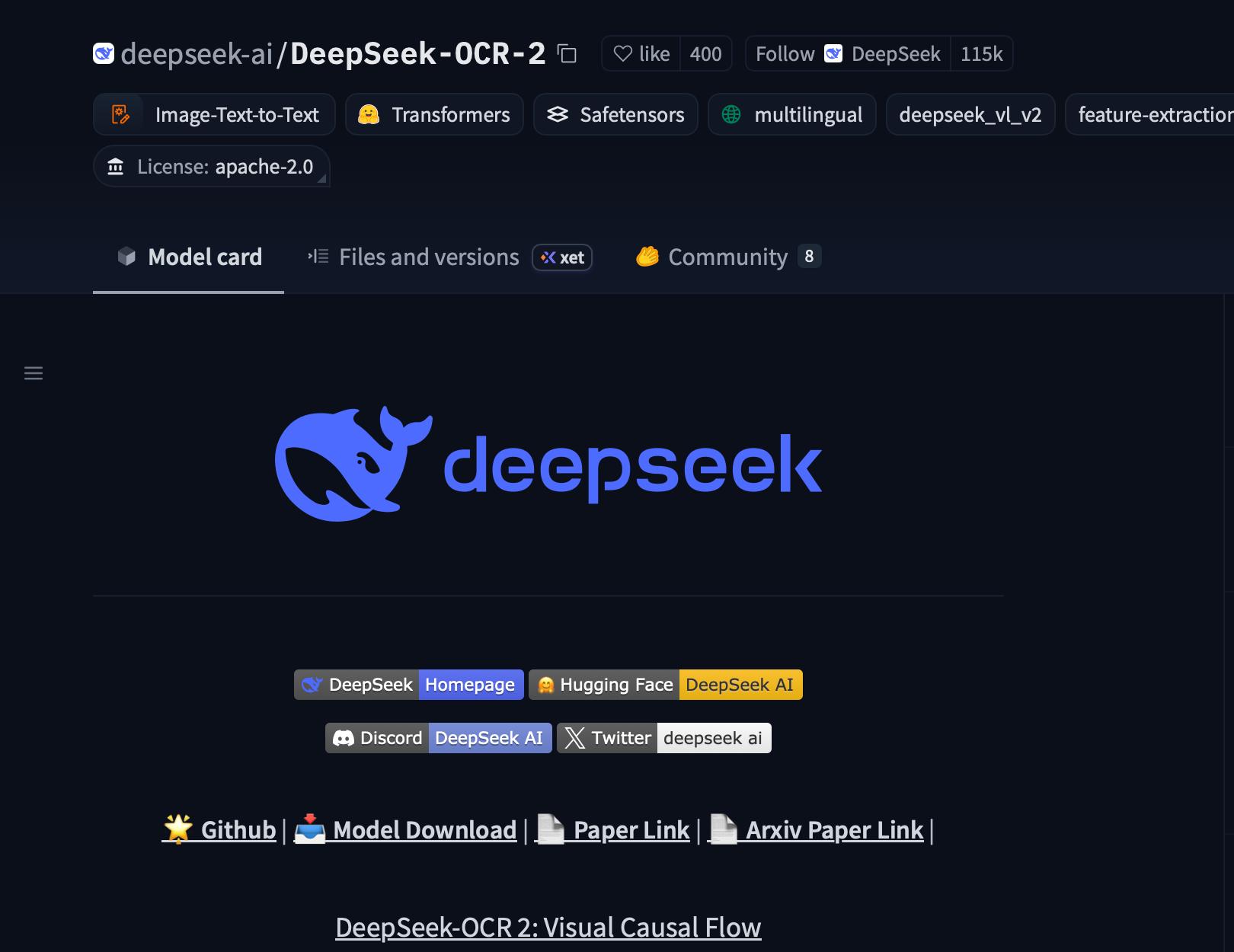 同日发布的DeepSeek-OCR2模型是去年10月官方推出的DeepSeek-OCR模型的迭代版本,团队采用了创新的DeepEncoder V2方法,让AI能够根据图像的含义动态重排图像的各个部分,而不再只是机械地从左到右扫描,这种方式模拟了人类在观看场景时所遵循的逻辑流程。