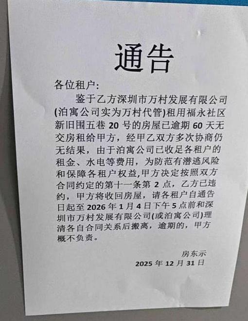 “我们房租还有半年到期呢,却突然被停水停电,年底了差点‘无家可归’。”某地万科泊寓租客这样对知危编辑部说道。