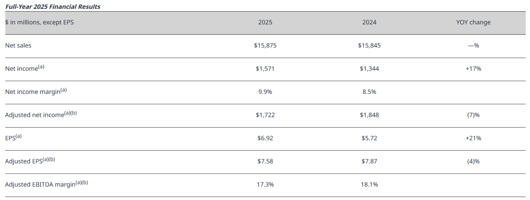 1月27日,PPG发布2025年第四季度及全年的财务业绩:公司全年净销售额为158.75亿美元,仅较2024年的158.45亿美元微增0.2%。考虑到公司在2024年本身已录得2%的同比下滑,因此2025年的微弱增长几乎可忽略不计。换言之,PPG已连续两年陷于增长停滞状态。