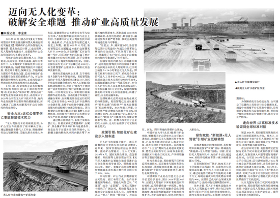 中国应急管理报 | 迈向无人化变革:破解安全难题 推动矿业高质量发展