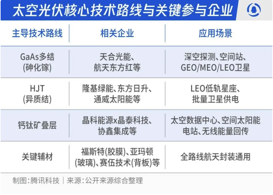目前,中国太空光伏产业已呈现不同方向的探索,多家龙头和创新企业已经提前在相关技术方向埋点。