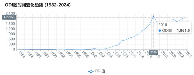 在上述三阶段全球化框架下,我们可以用几组数据来观察中国在全球化进程中的位置变化。为了避免只看单一指标带来的误判,我们采用三组数据:以对外直接投资(ODI)观察资本跨境配置与企业国际化的节奏,以进出口总额观察供应链分工结构与跨境贸易,再以实际利用外资作为“引进来”的参照,从而更完整地把握“走出去”与“引进来”的互动关系。