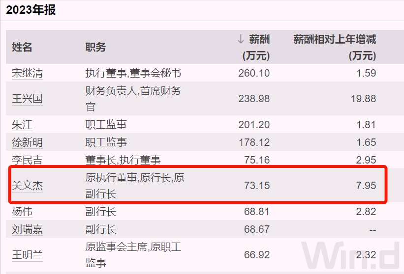 根据年报,2023年,关文杰税前薪酬为73万元,增加约8万元。