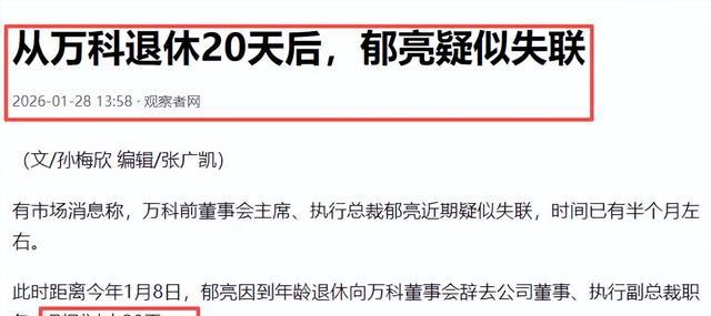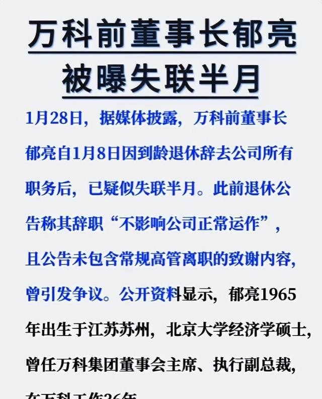 曝万科前董事长郁亮失联!刚卸任20天,知情人曝内情,果然有猫腻