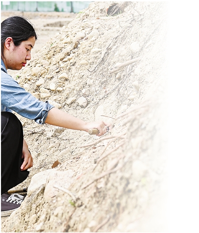 市考古所工作人员对衣锦城进行考古发掘。记者张之冰摄