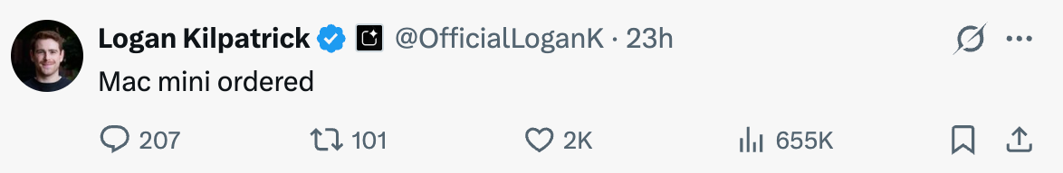 很多人为了运行 Clawdbot 会专门买一台电脑,而大部分选择了 Mac Mini,原因是它便宜、兼容好、功率低、安静、占地小。谷歌 DeepMind 产品经理 Logan Kilpatrick 都忍不住订了台 Mac Mini。