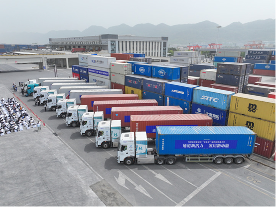 氢能重卡在陆海新通道重庆无水港等候发车
