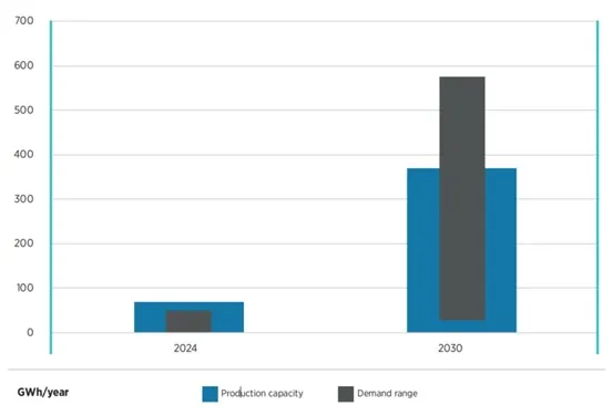 另据国际可再生能源署数据,到 2025年末,全球钠离子电池年产能预计将达到 70 GWh,以层状金属氧化物正极材料为主。尽管与锂离子电池(LIB)相比,钠离子电池的市场份额仍相对较小,但产能预测显示出对生产企业的乐观前景,预计到2030年,全球产能可超过370 GWh/年。