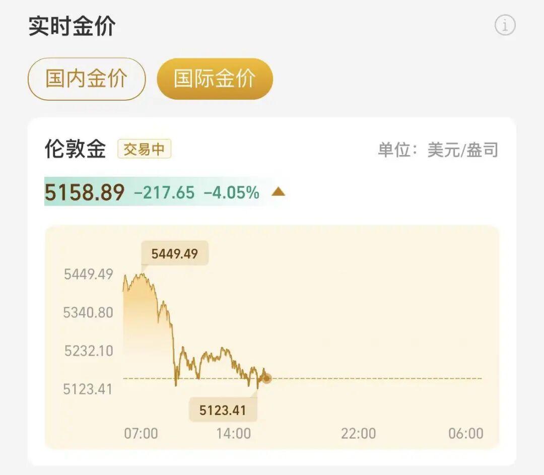 1月29日深夜,黄金巨震,现货黄金价格在逼近每盎司5600美元高位后,突发跳水。今天早间,金价有所回升,但午后再度大跌,截至今天下午4点,伦敦金失守5200美元,国内金价也跌破1200元。