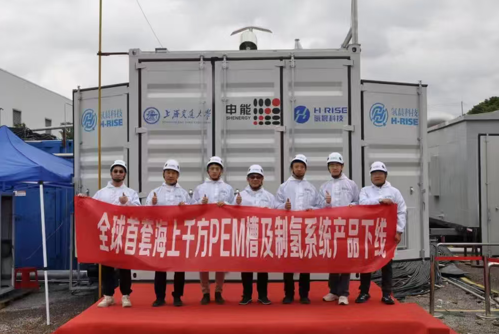2025年10月,上海氢晨新能源科技有限公司子公司上海氢盛创合能源科技有限公司自主研发的全球首个海上5兆瓦质子交换膜(PEM)电解槽及制氢系统,已实现全功率测试启动并成功正式下线。该款针对海上漂浮式平台设计的大功率PEM电解槽及制氢系统,突破了高耐久材料、高传质流场、高精度装配和高效率控制等多项创新技术,具备离网运行、防腐蚀、抗风浪和轻量化等特性,可在恶劣海洋环境下长期稳定运行。整个系统采用模块化设计,每小时制氢量达到1000标立方米,是国际上产能最大的海上PEM电解槽及系统。
