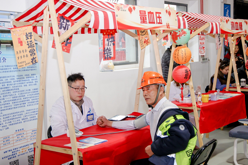 “致敬城市建设者”新春公益集市为城市建设者量血压、送祝福