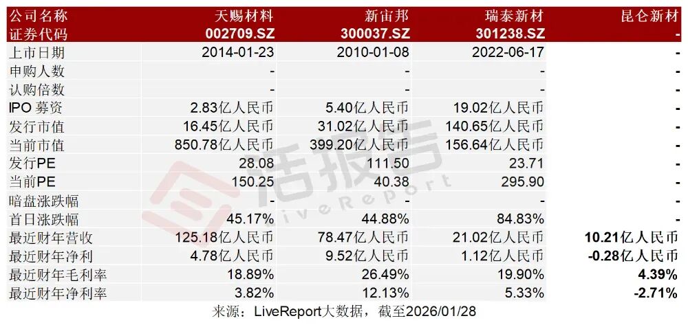 天赐材料(002709.SZ)、新宙邦(300037.SZ)、瑞泰新材(301238.SZ)