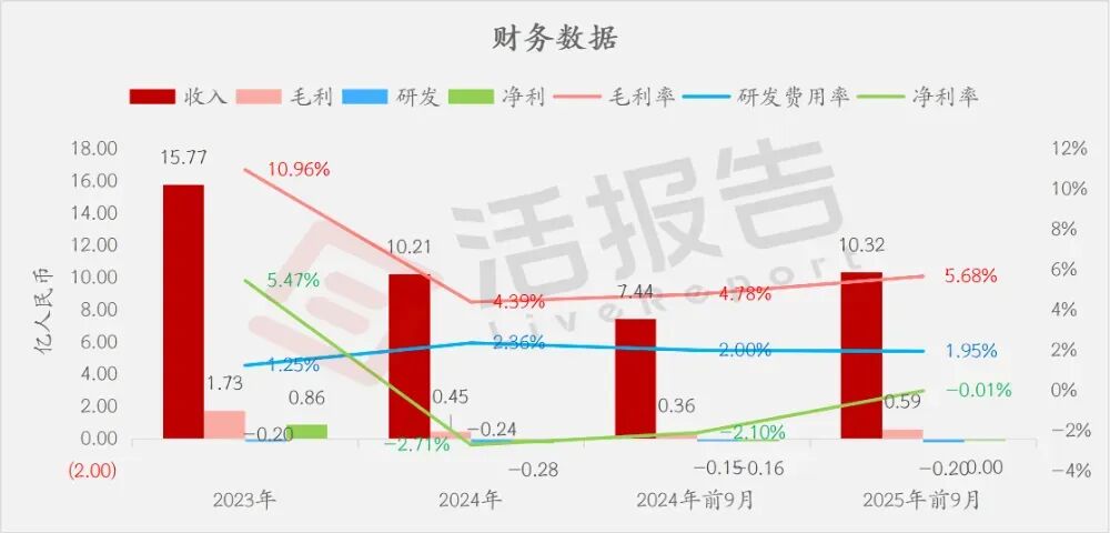 净利分别约为人民币0.86亿、-0.28亿、-0.16亿、0.00亿,2025年前9月同比-99.13%;