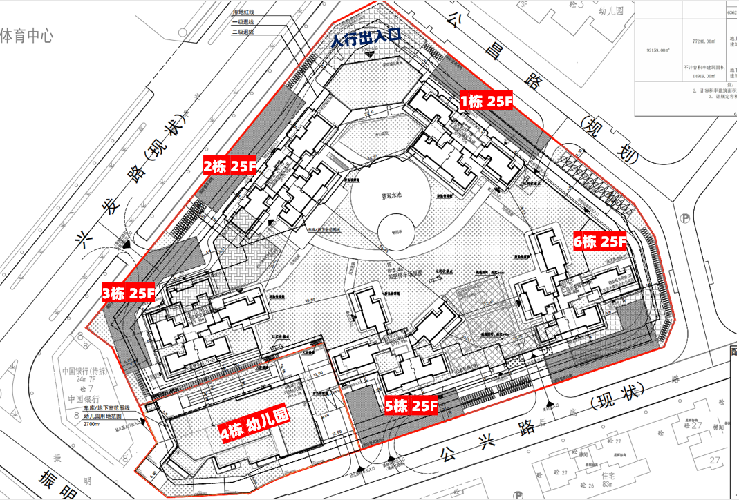 小区共五栋住宅,均为25层,楼高79.95米。
