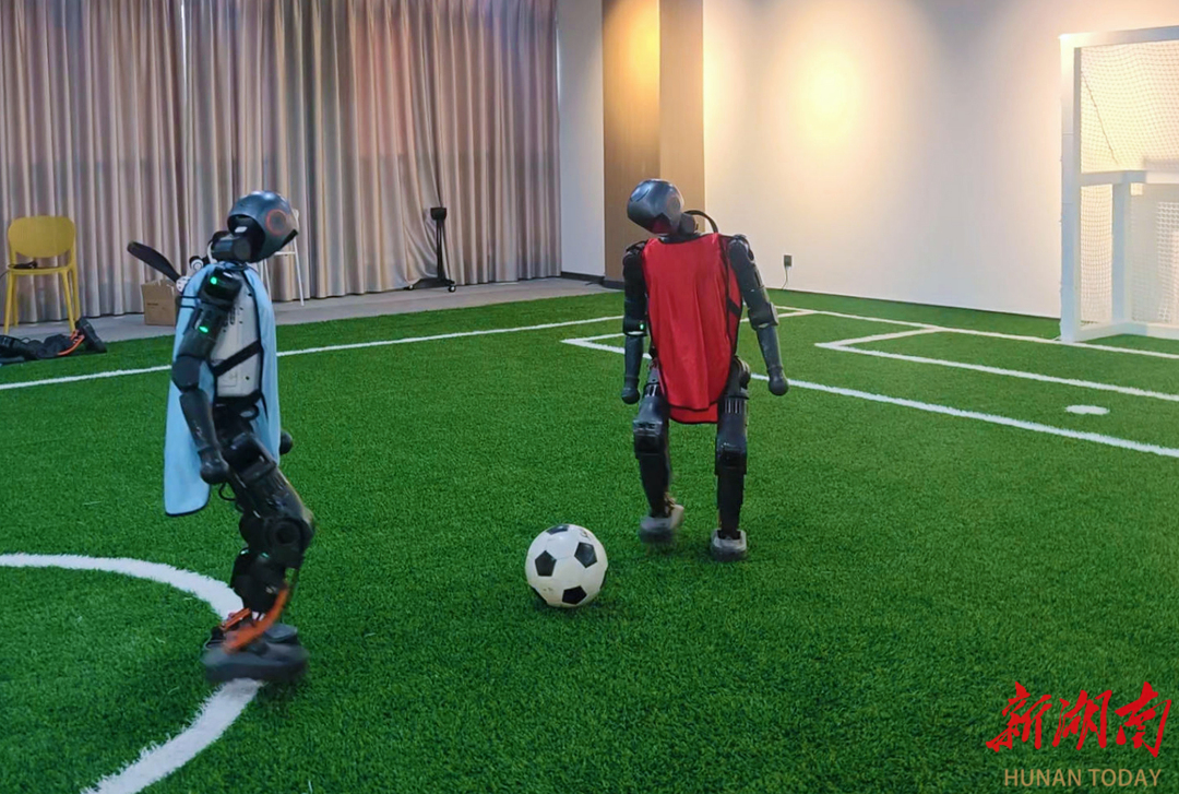 1月16日,湖南具身智能创新中心,人形机器人进行足球对抗训练。湖南日报全媒体记者范远志摄
