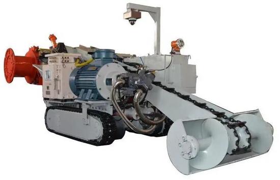 传统装载机清淤方式存在耗时久、人工多、效率低的问题。水仓清理机器人由清仓机、搅拌桶、压滤机、刮板输送机组成,支持远程、无线遥控及手动3种控制模式,实现“挖装-搅拌-脱水-运输”全流程机械化。其采用阶梯模糊PID算法实现淤泥厚度±20 cm精度检测,双压滤机交替工作使效率提升1.5倍,履带式行走适配复杂地形。清仓机每小时最大处理量200m,净煤泥处理量60~80 m,脱水后煤泥含水率低于30%可直接装车。应用于大柳塔煤矿盘区水仓清淤工程,传统3人/班“三班倒”需15天完成,机器人1~2人操控7天完工,效率提升200%;远程操控避免人员在高危环境下作业,刮板输送机与压滤机联动可有效防止巷道污染,水仓清理机器人如图3所示。