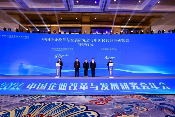 本次年会以“1+7”的形式,设置主旨演讲、平行会议和闭门研讨等多场平行会议。会议期间,中国企业改革与发展研究会与中国民营经济研究会签订战略合作协议;集中发布了一批重要成果,包括《2026中国企业改革发展报告》、第九届“中国企业改革发展优秀成果”、《中国企业改革发展2025蓝皮书》、2025中国企业改革发展十件大事、2026中国企业改革与发展研究会十大研究课题等;同时,会上举行了2026精益数智化创新大赛启动仪式。这些成果的发布和活动的举办,全面展示了当前我国企业改革发展的最新进展和显著成效,有效促进了各方交流互鉴与务实合作,为服务中国式现代化建设贡献企业力量。