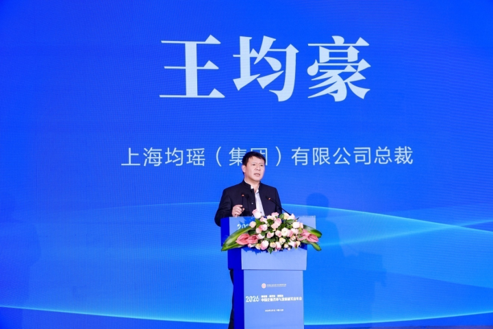 王均豪作了以《中国企业全球化新路径》为主题的发言,他结合均瑶集团国际化探索历程,提出中国企业全球化应实现从“走出去”到“走进去”、“走上去”的升级。通过打造具有全球竞争力的益生菌产业、突破高端飞行模拟机技术、传播中国古琴文化等实践,均瑶集团展现了民营企业依托科技创新与文化自信,在全球价值链中向上攀升的可能路径,彰显了民营经济的活力与担当。