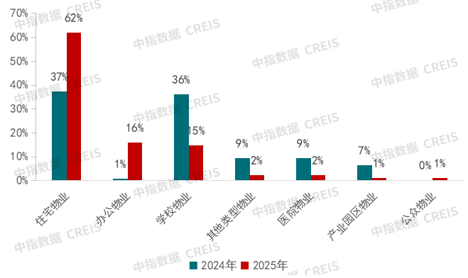 图:2024-2025年公开市场房地产代建招标公告业态占比情况