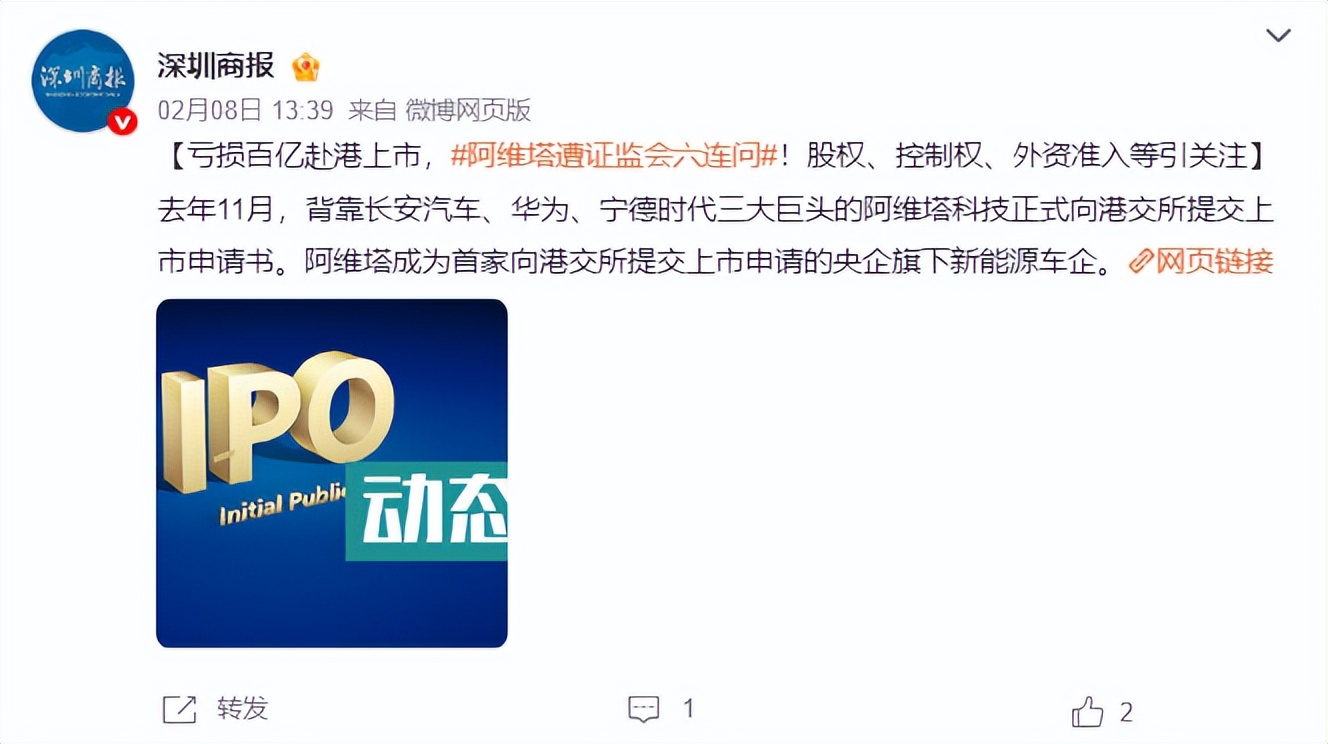 近日,正冲刺港股上市的阿维塔,在IPO关键节点,遭中国证监会国际司要求其出具补充材料。
