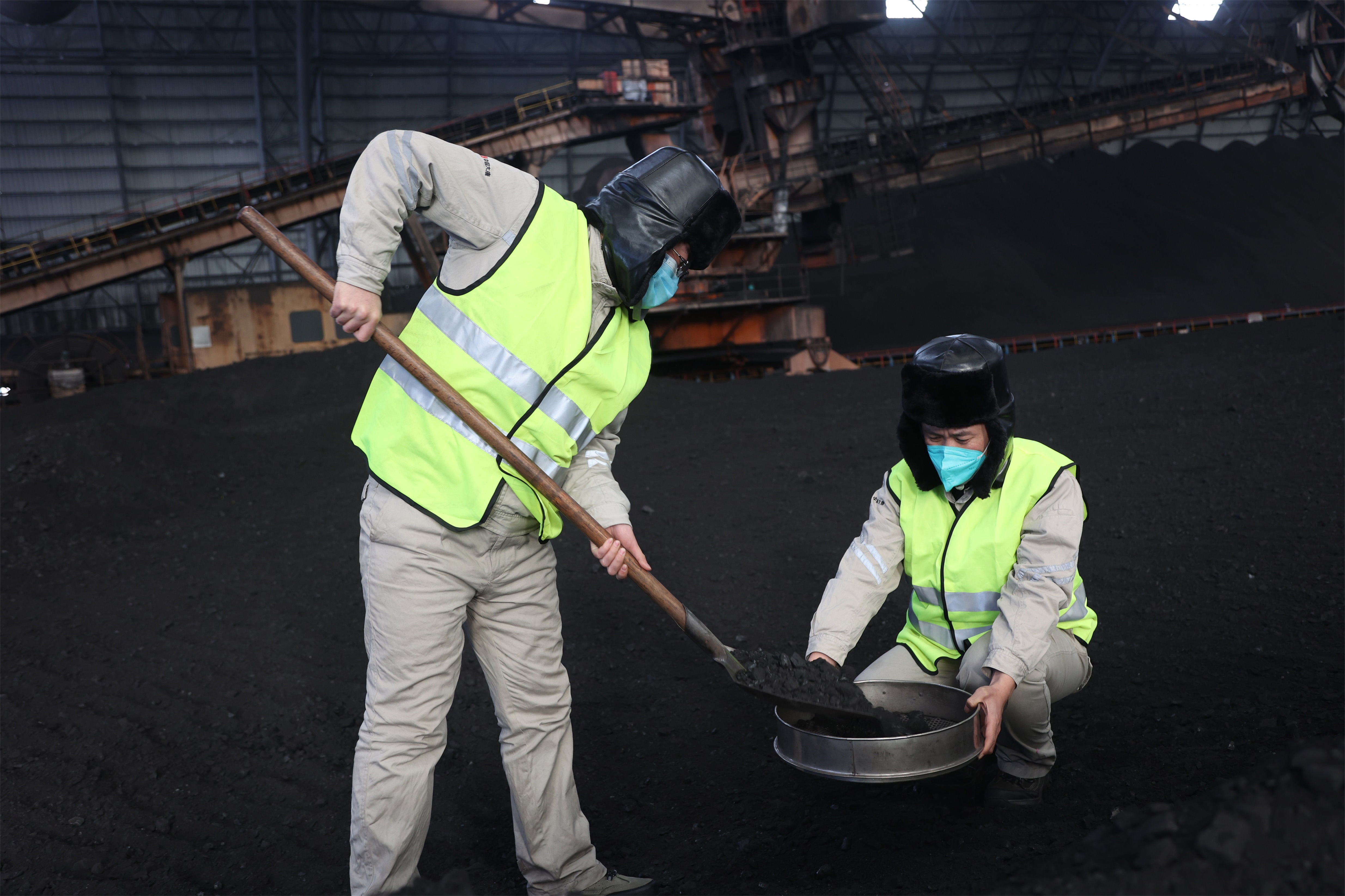 内蒙古大唐国际托克托发电有限责任公司燃料采样专业人员,在对煤场来煤进行现场筛分试验,把控煤炭燃料质量。