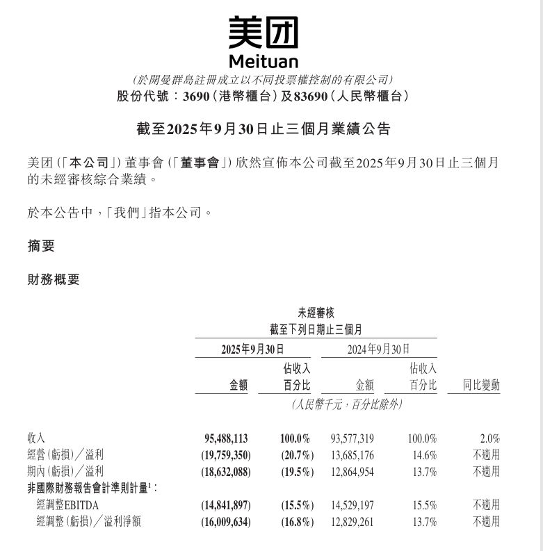 【电商】美团2025年度预亏233-243亿元,核心业务承压与战略投入成主因