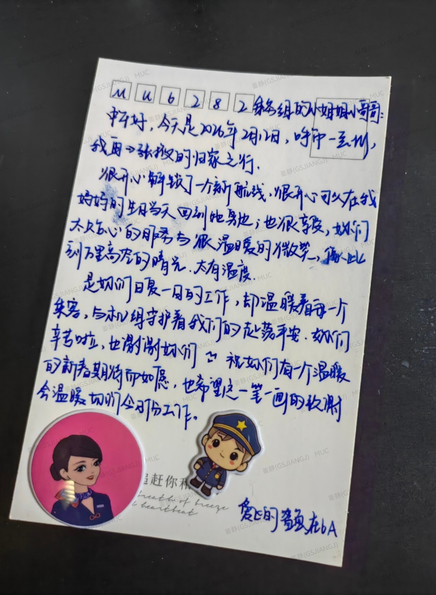 当旅客开始有序登机时,该航班公务舱金卡旅客苏女士递给乘务员一本飞行日志。在不违反航空安全规定的前提下,飞行机组认真阅读并为其填写了相关内容。当乘务长准备将日志交还给苏女士时,日志中一段深情的文字引起了她的注意。
