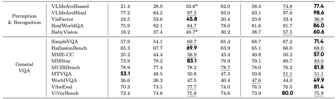 在 VLMsAreBiased、VLMsAreBlind、BabyVision 等视觉感知能力基准中,豆包 2.0 取得了业界最高分。