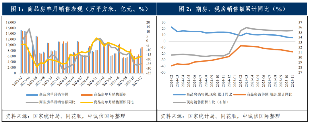 从需求变化来看,国家统计局数据显示,2025年中国新出生人口为792万人,较2024年减少约162万人,创下本世纪以来新低,总人口亦呈负增长趋势,其中60周岁及以上老年人口占总人口比例增加至23%,且逐年上升; 2025年末我国常住人口城镇化率为67.89%,较上年末提高0.89个百分点,虽较发达国家还有上升空间,但近年来进程明显放缓。在上述背景下,房地产市场未来刚性需求将持续减弱。从住房消费能力和意愿来看,2025年居民收入持续改善,2025年全国居民人均可支配收入为43,377元,同比增长5.0%;但在行业低迷、房屋交付时点及质量不确定的情况下,加大了居民购房意愿恢复的难度,现房交易的比例提升。2025年国内现房销售额维持增长态势,期房销售额大幅下滑,2025年1~11月现房销售面积占比提升至35.44%。居民购置改善性住房需求不断增长,根据中指监测数据,2025年以来,北京、上海、成都、宁波、合肥等城市高总价改善楼盘去化表现良好,带动30城120平米以上户型新房成交占比持续提升,其中120~144平米户型占比超30%,“好房子”的打造也将是未来房企竞争的主要方向。中诚信国际认为,预计2026年改善性住房的结构性需求仍较为强烈,但整体市场需求的稳定仍需改善预期方面的政策引导,同时支持政策应避免短期刺激,着力于精准调控和长效机制。