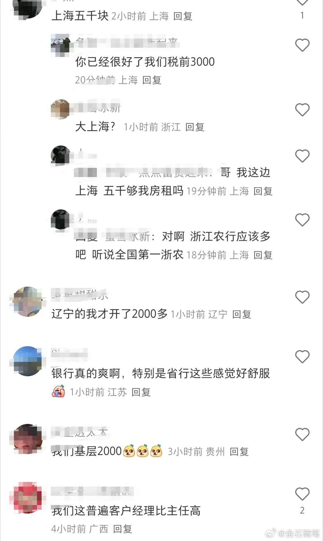 ②农行,江湖传闻北分一般客户经理拿到8-10个,有司龄16年的辽宁老员工拿到了5万;而一般员工基本都是这样的:上海5000,辽宁3000;但也有不少高的:比如ip内蒙的一位1.2万,广西的一位5万,重庆10万,北京9.8万。看样,核心还是看职级+地区。