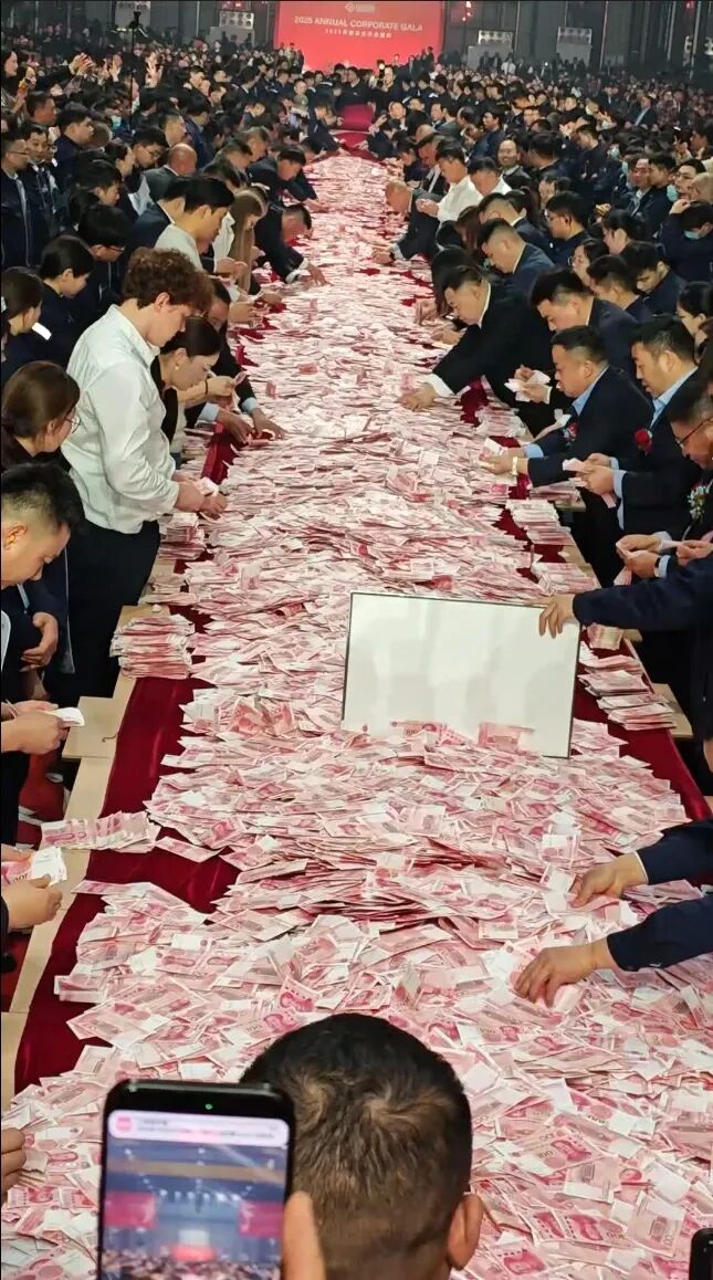 1)河南矿业,企业去年累计盈利2.7亿元,这次年终奖将发给员工1.8亿元,再创新高,三分之二的利润都将分给员工。年会现场发放6000万元现金,供员工参与数钱环节。