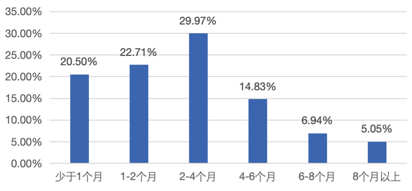 从金额上看,年终奖倍数明显缩水。在拿到年终奖的群体中,43%的人年终奖在1-2个月之间,2-4个月的占30%,4-6个月的占15%,6个月以上仅12%,奖金倍数较行业巅峰时大幅减少了,预计今年的将更少。