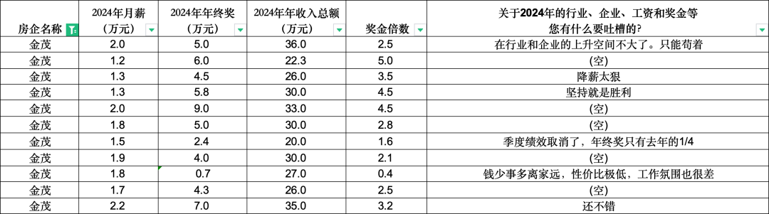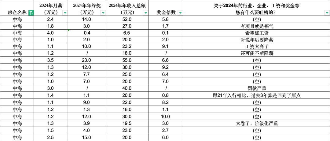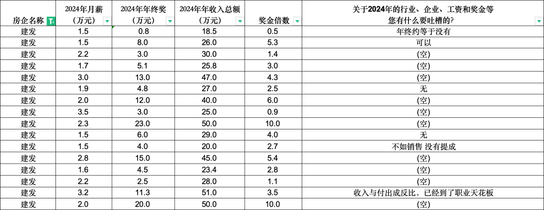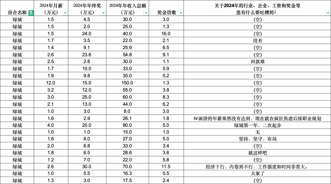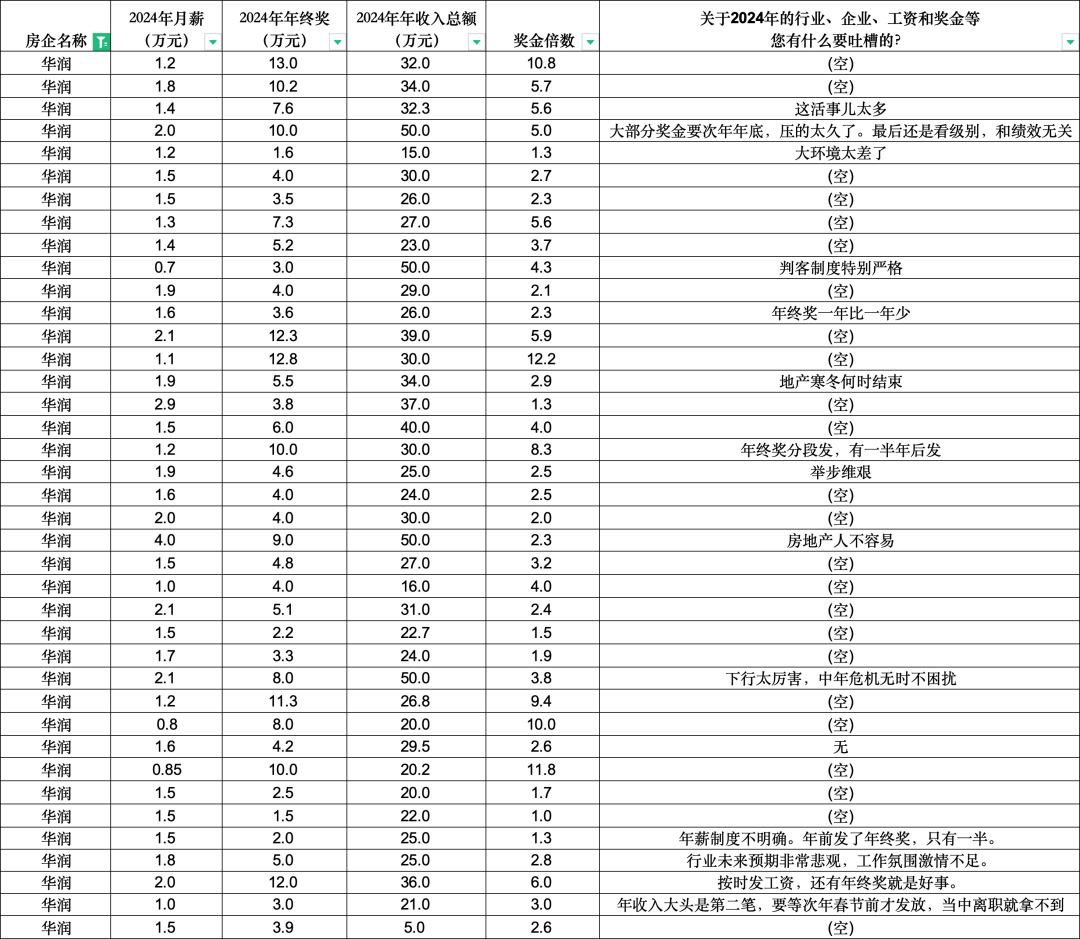 注意以下表格是2025年初发的2024年终奖数据,并非2025年的最新数据。