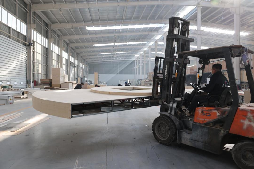 “为确保3月初顺利完工,按时赴合肥园博园完成现场搭建,车间实行24小时轮班制。”山东森为展览展示有限公司厂长严来光紧盯生产进度,言语间满是笃定与底气,“我们一边抢抓主体施工进度,一边加班细化打磨细节,从原材料进场检验到成品出厂验收,实行全程闭环管控,严格把控每一道工序、每一个节点,坚决守住质量底线、筑牢安全防线。”