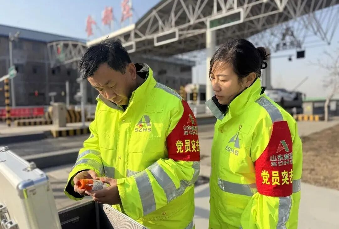 聊城发展公司金郝庄收费站工作人员检查便民服务台应急药品。
