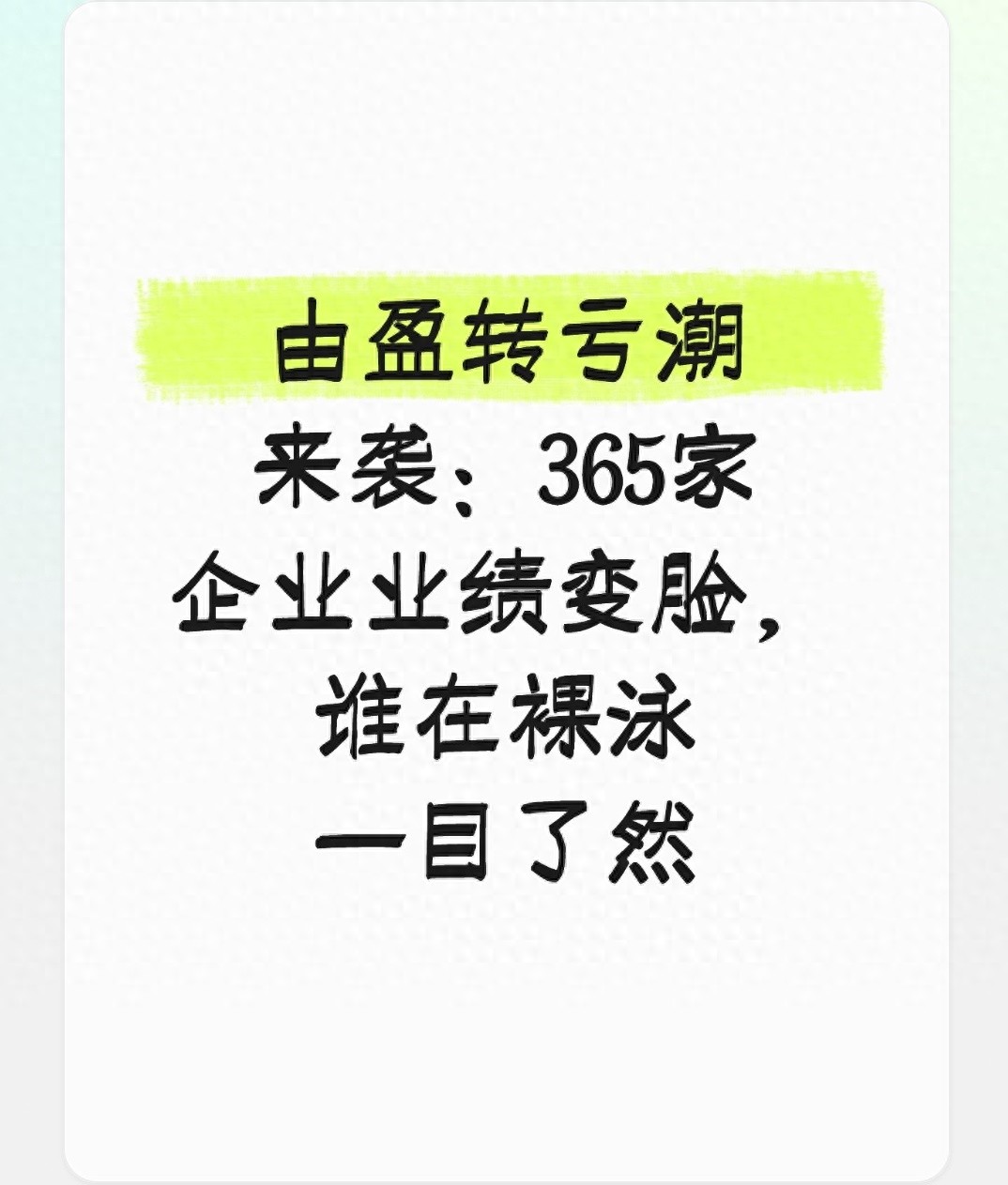 回到标题:由盈转亏潮来袭,365家企业业绩变脸,谁在裸泳一目了然。
