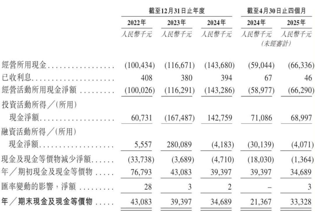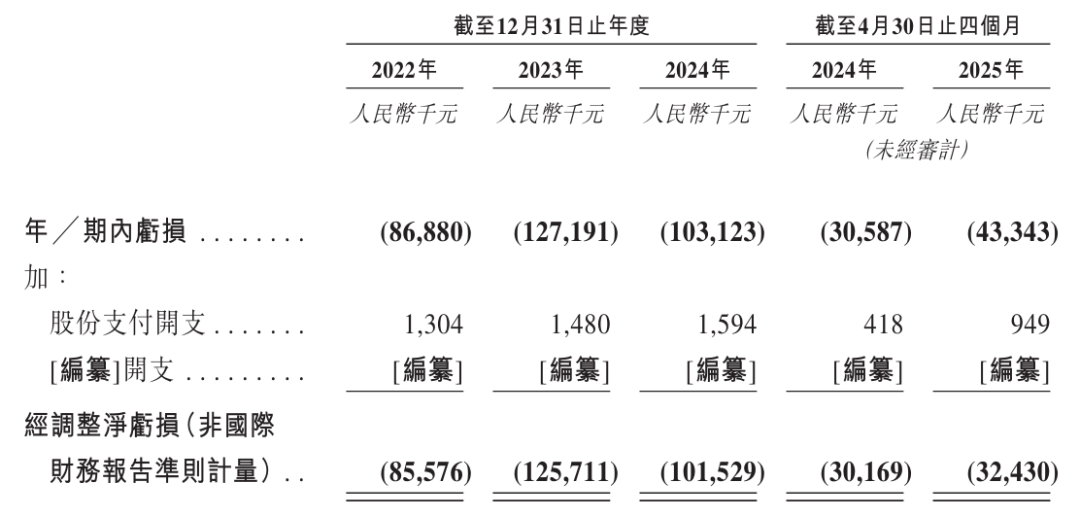 哥瑞利2022年、2023年、2024年经调整净亏损分别为8558万、1.26亿、1亿元;2025年前4个月经调整净亏损为3243万元。