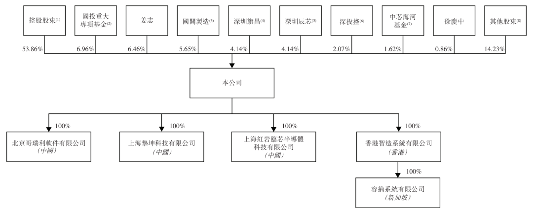 国投重大专项基金持股为6.96%,国开制造持股为5.65%,深圳旗昌、深圳辰芯分别持股为4.14%;