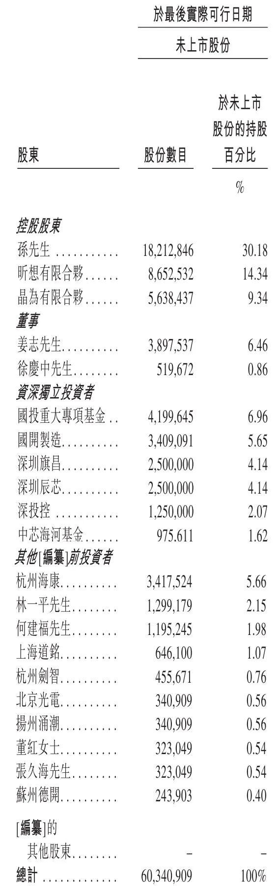 深投控持股为2.07%,中芯海河基金持股为1.62%,杭州海康持股为5.66%,林一平持股为2.15%,何建福持股为1.98%;
