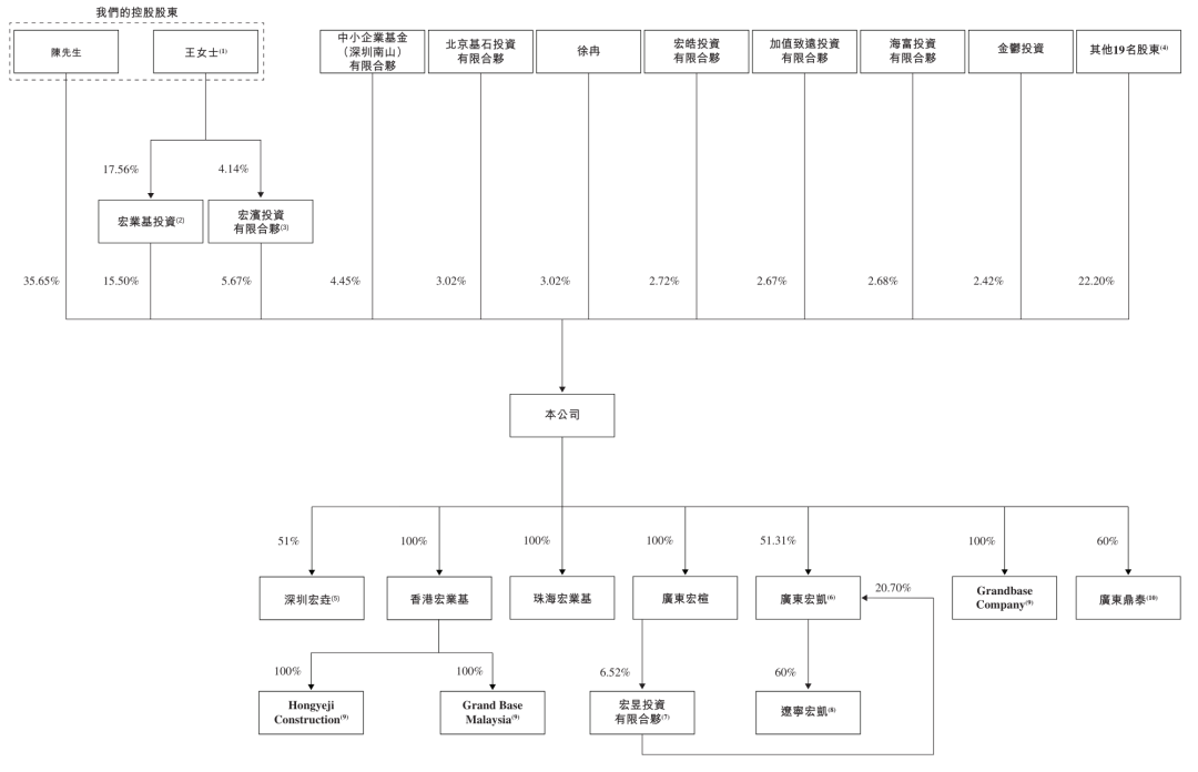 截至本招股说明书签署日,陈枝东直接持有宏业基35.65%的股份,王凤梅通过宏业基投资、宏一投资合计间接持有宏业基2.96%股份;陈枝东和王凤梅夫妇合计直接及间接持有宏业基38.61%股份。
