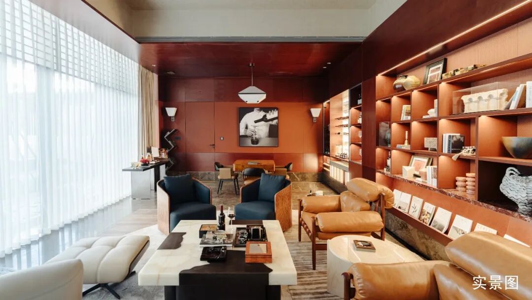 除此之外,还针对旅居客户的娱乐需求,打造了全龄化的娱乐系统,融合私宴厅、红酒雪茄吧、轰趴、高尔夫室内练习、棋牌等聚会功能。并且在不同功能之间做了区隔,又保持了视觉联通,打造了互不干扰,又彼此可见的亲子友好空间。