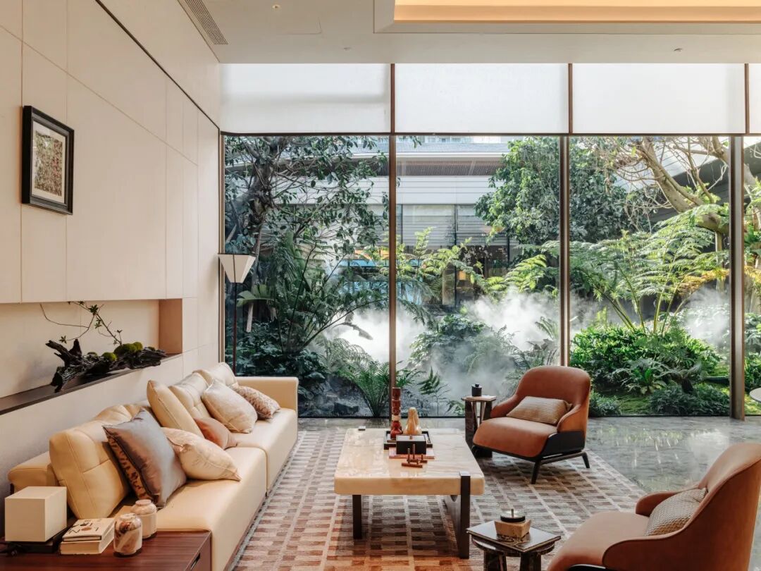 随后,通过北入口星级酒店式落客区与中央车站,无风雨直抵家门;或步入海居联盟会客厅,感受精致艺术雕塑与巨幅环幕玻璃围合下的尊崇款待,明亮松弛中回归家的适逸与温度。