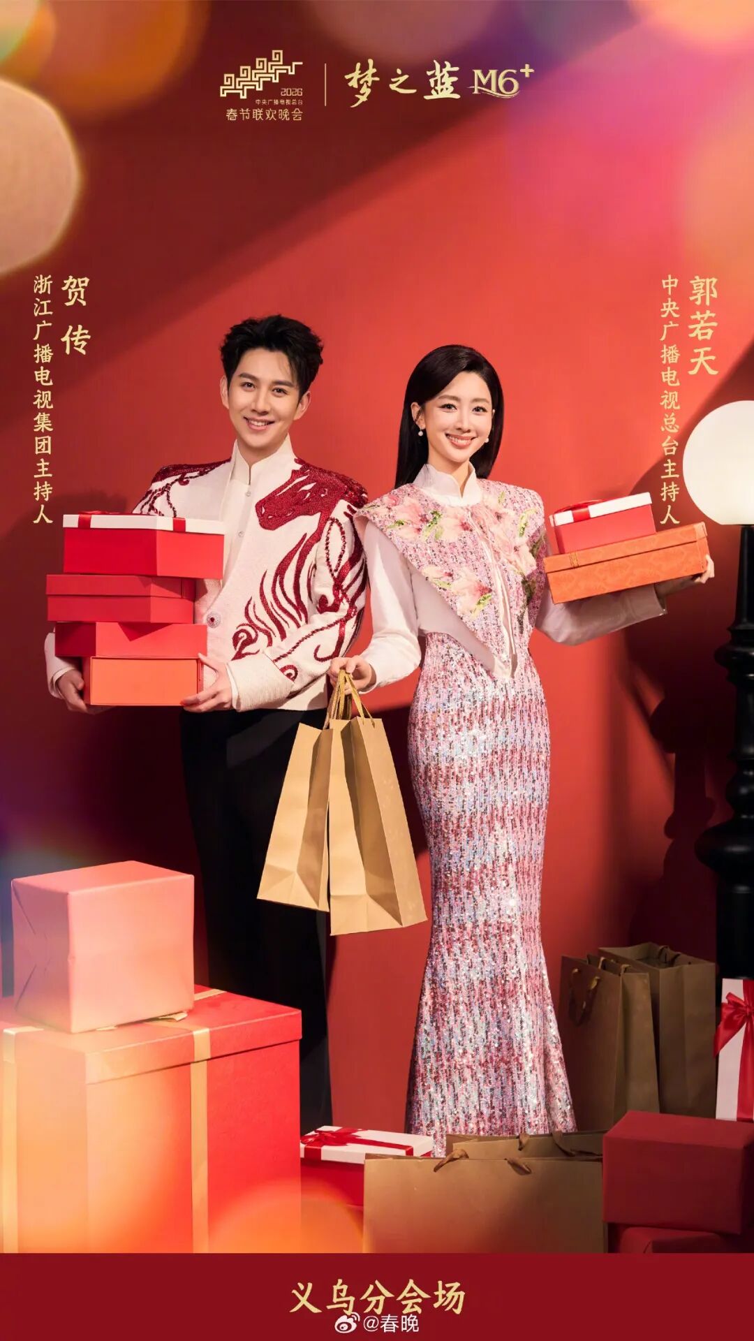 2月4日,中央广播电视总台《2026年春节联欢晚会》发布主持人阵容。任鲁豫、撒贝宁、尼格买提、龙洋、马凡舒、刘心悦将共同担任2026年总台春晚北京主会场主持人。四地分会场主持人为:黑龙江哈尔滨分会场杨帆、姜多;浙江义乌分会场郭若天、贺传;安徽合肥分会场朱迅、白羽;四川宜宾分会场张韬、王楚涵。