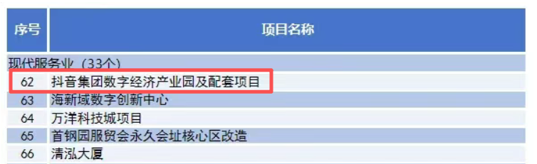 极有可能就是北京重点工程中的“抖音集团数字经济产业园及配套项目”。